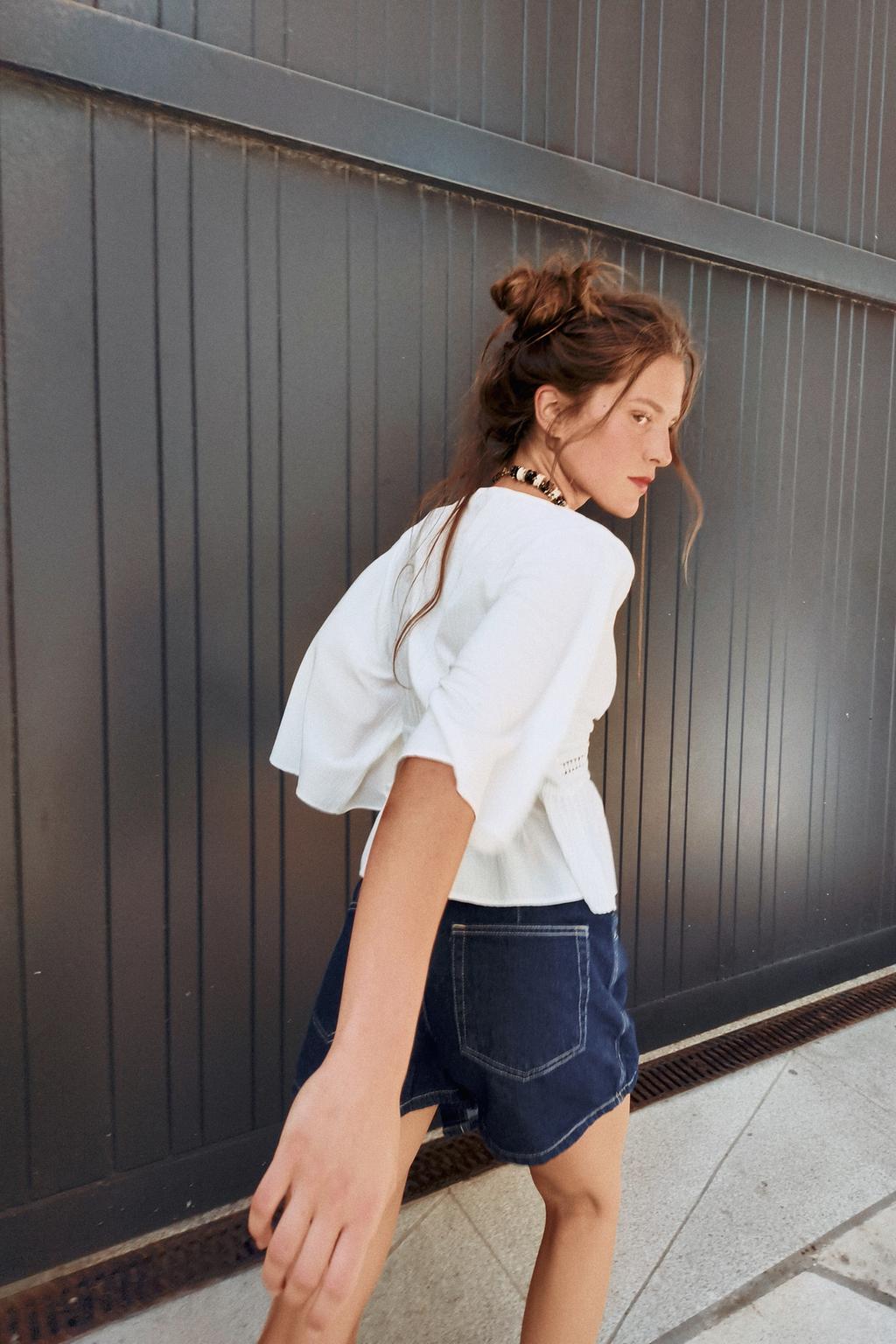 پیراهن SHORT BLOUSE WITH LACE TRIM برند زارا