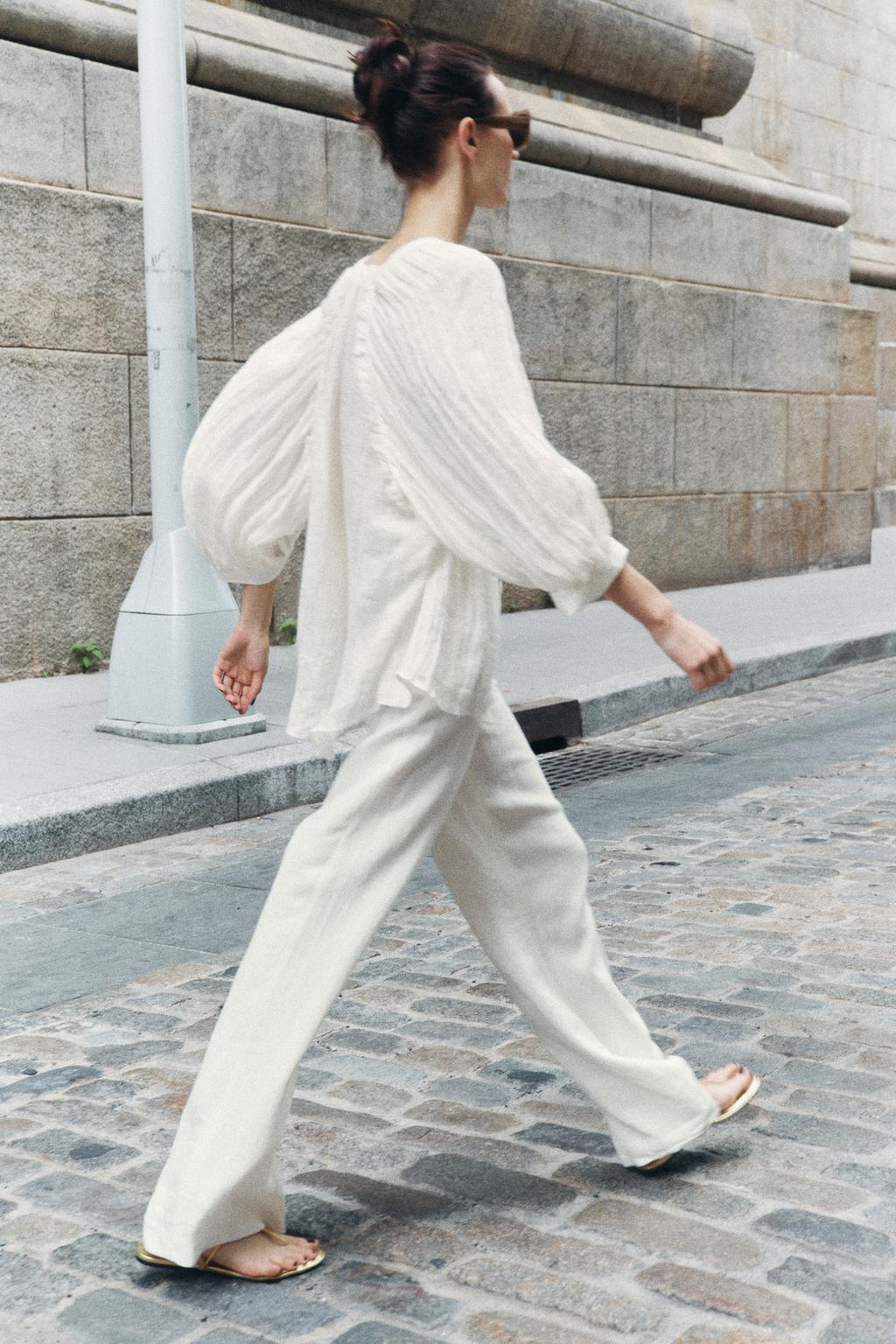 پیراهن ZW COLLECTION VOLUMINOUS LINEN BLOUSE برند زارا