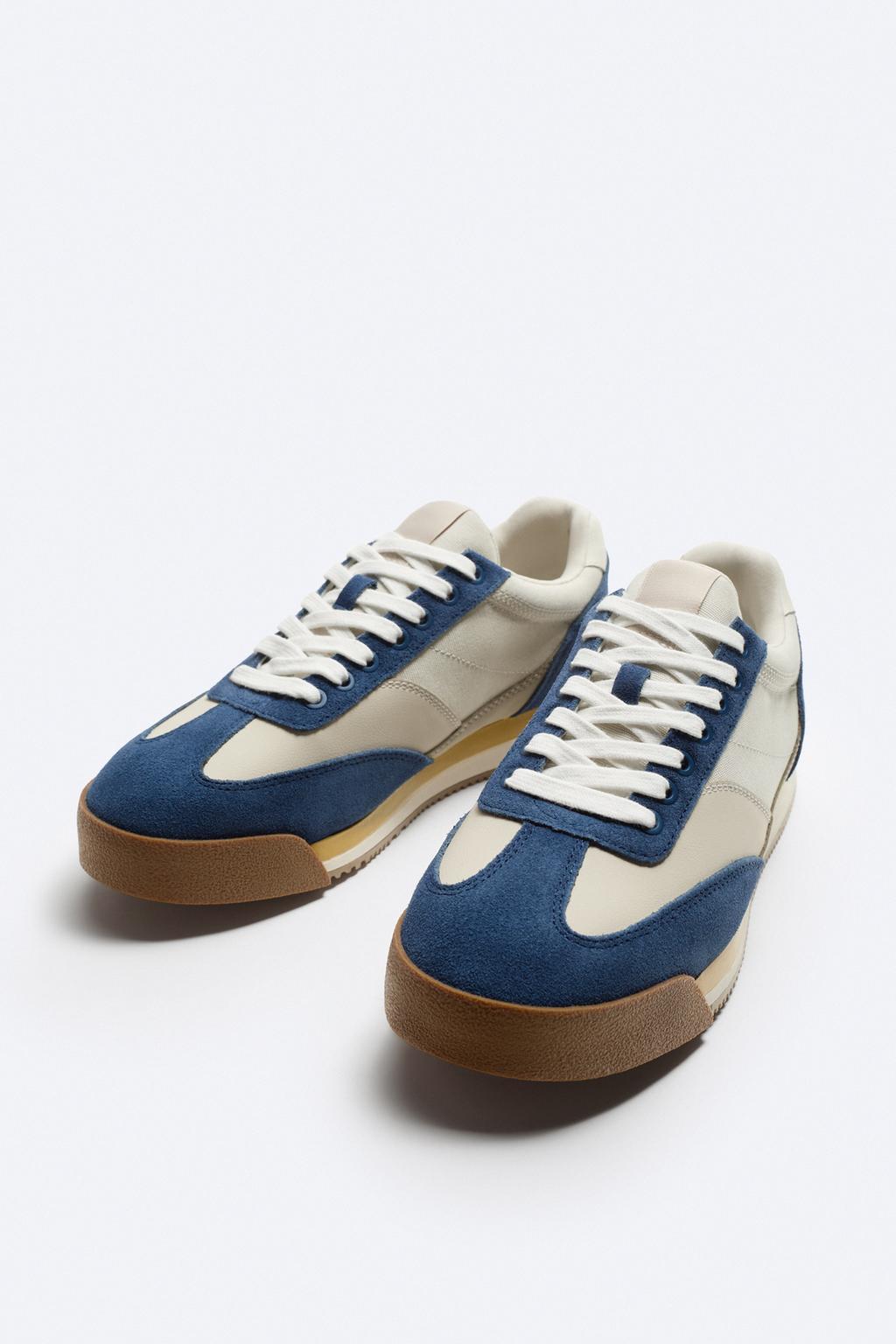 کفش ورزشی رترو. رویه چند تکه در مواد و رنگ های مختلف. زیره دو رنگ و زیره کاراملی رنگ.